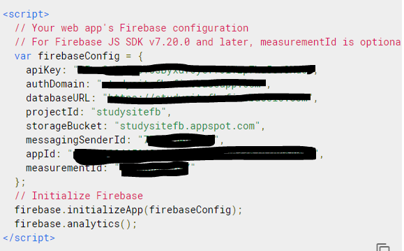 2. 프로젝트를 등록하고 받은 firebase SDK를 저장해놓습니다.