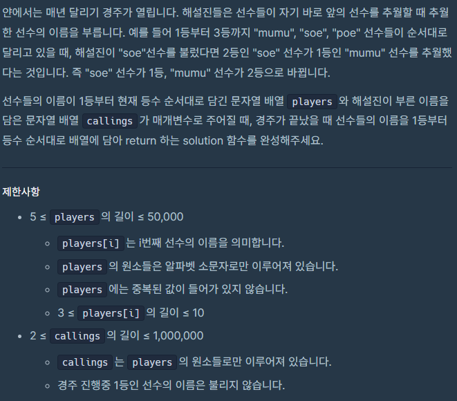 callings 를 순회하면서 players의 해당 선수의 위치 값을 찾고 바꿔주는 방법입니다.
