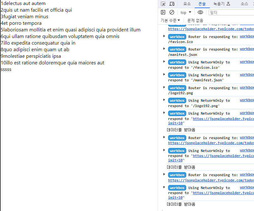 console.log("데이터를 받아옴");